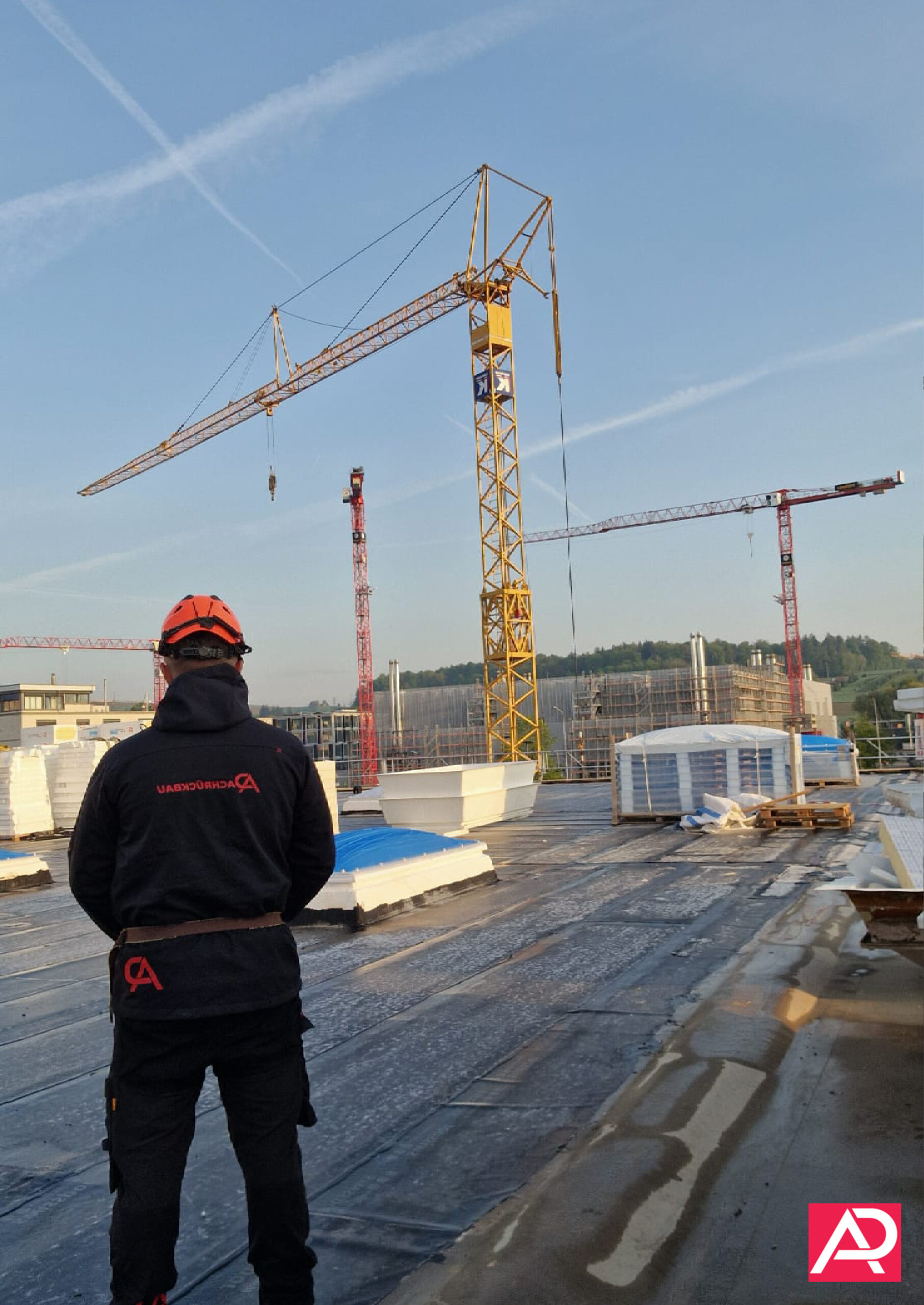 Unsere Flachdach- bzw. Aufdachgerüste werden direkt auf dem Flachdach montiert und bieten eine sichere und stabile Arbeitsgrundlage. Sie lassen sich flexibel an die baulichen Gegebenheiten und individuellen Anforderungen vor Ort anpassen. Besonders bei Arbeiten an Dachrändern oder an technischen Aufbauten gewährleisten sie maximale Sicherheit. Selbstverständlich entsprechen sie allen aktuellen Sicherheitsvorschriften und eignen sich ideal für Arbeiten auf Flachdächern jeder Art.